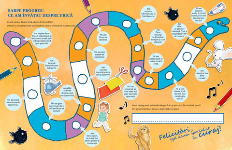 Frica și prudența se țin mână în mână și le găsim una lângă cealaltă în carte, iar la sfârșitul acesteia găsiți câteva activități practice care îi ajută pe copii sa dea mâna cu frica și sa prindă curaj.